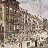 collage of detail from Leopold Beyer ‘Vienna , Naschmarkt’
